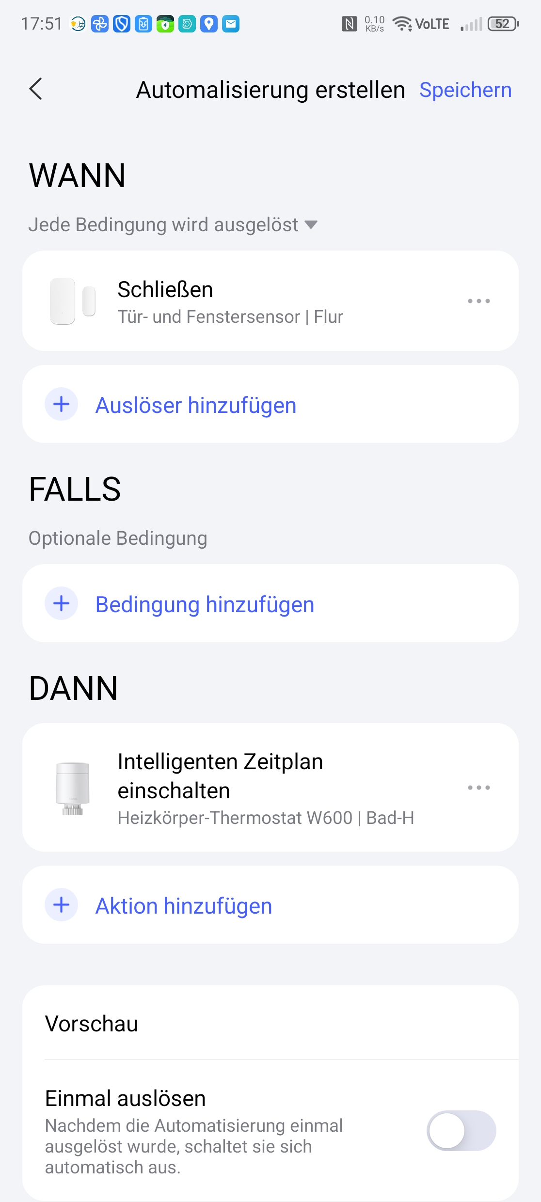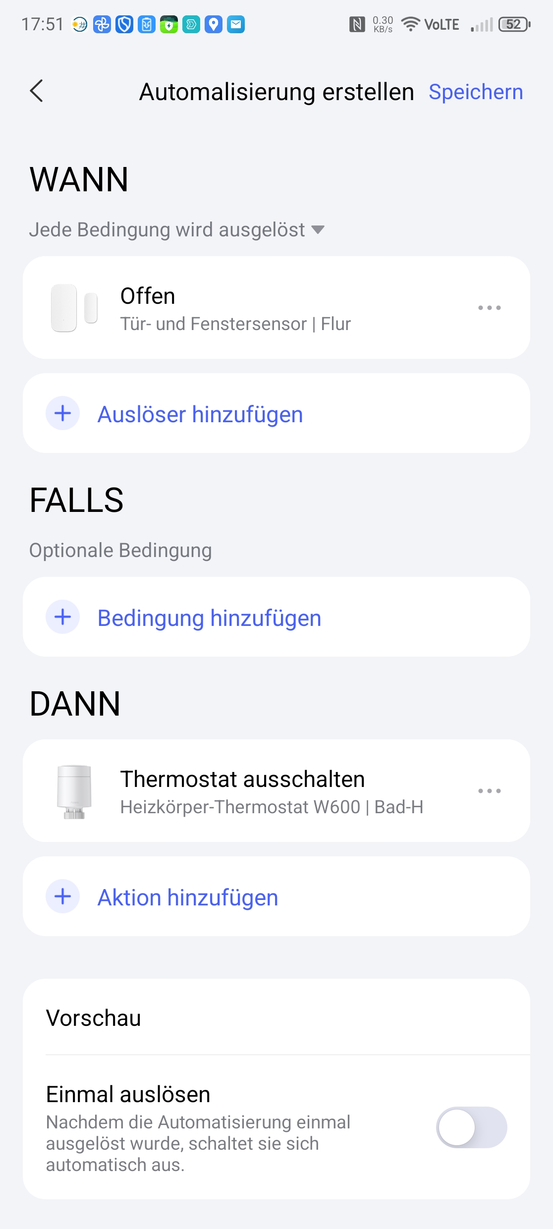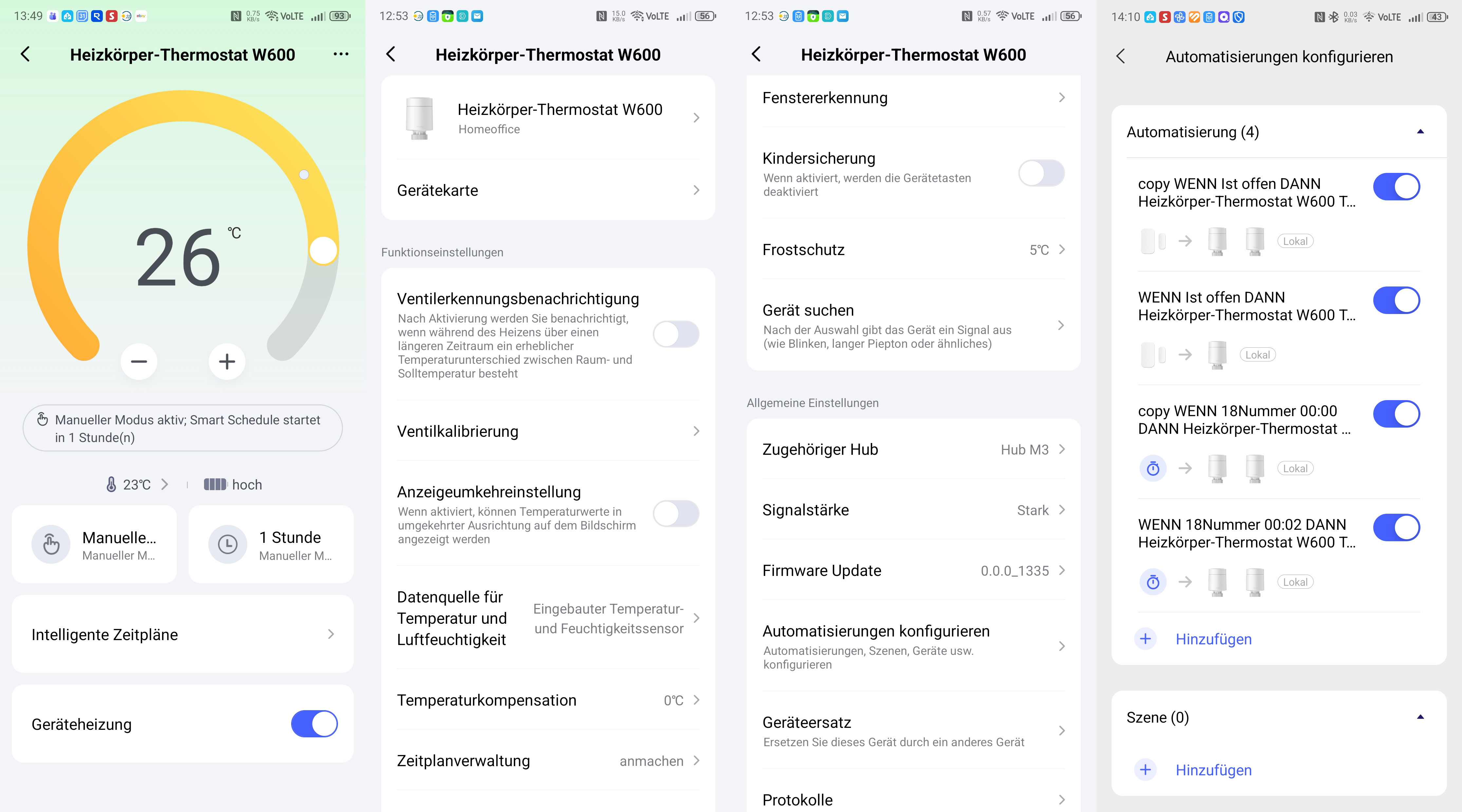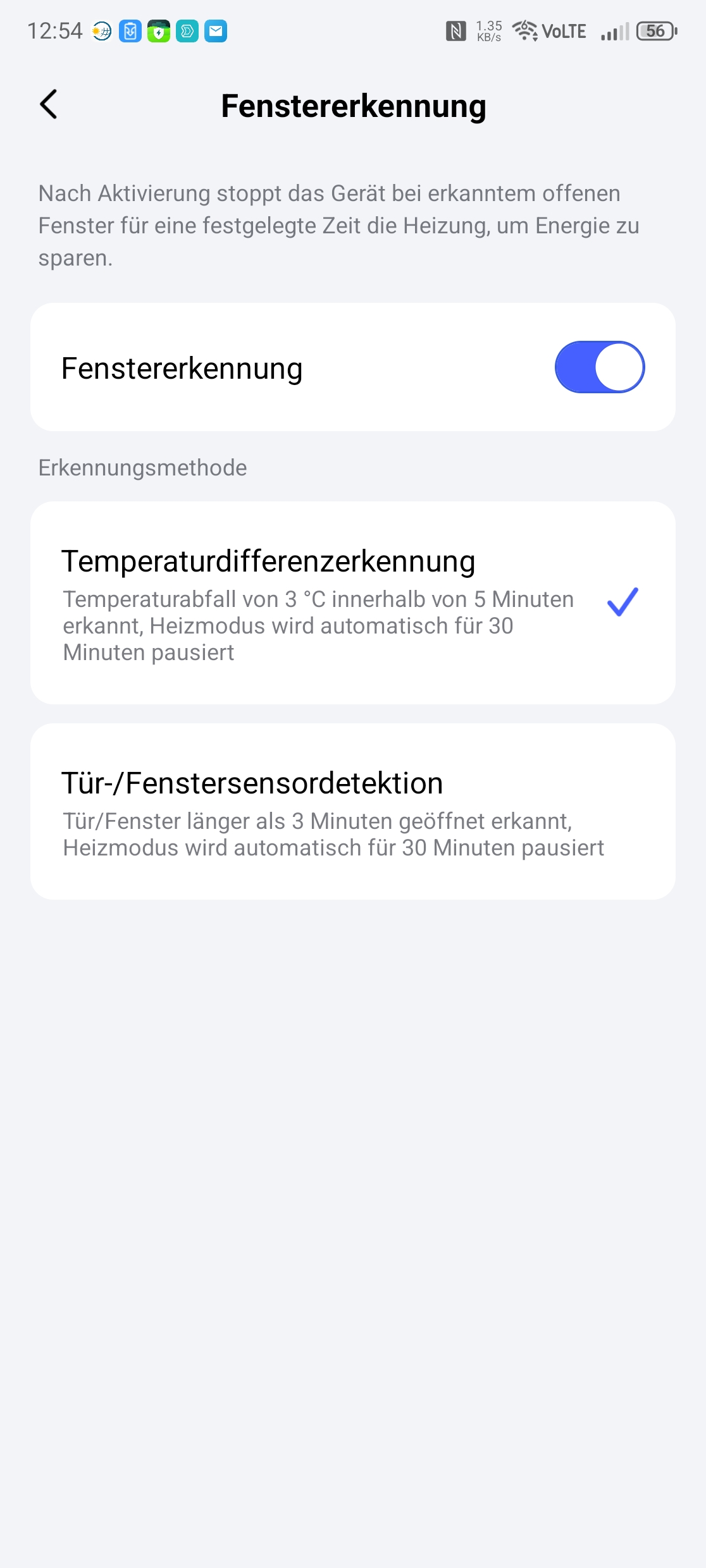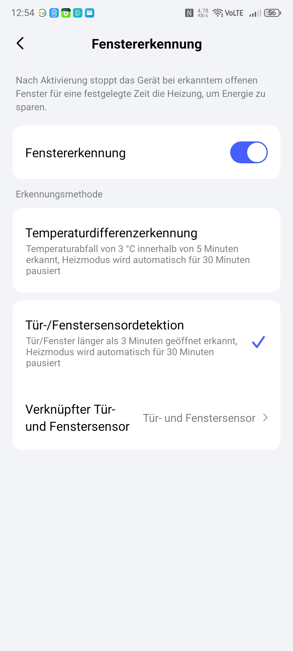 So lässt sich etwa die unzuverlässige, integrierte Fenster-offen-Erkennung – die auf einem starken Temperaturabfall basiert – durch einen präzisen Tür-/Fenster-Sensor von Aqara ersetzen. Dadurch wird sichergestellt, dass die Heizung bei geöffnetem Fenster tatsächlich pausiert. Die Standard-Funktion zur Fenstererkennung reagiert erst nach drei Minuten Öffnungszeit und schaltet das Thermostat nach 30 Minuten automatisch wieder ein. Soll das W600 bei geöffnetem Fenster dauerhaft ausgeschaltet bleiben, muss dies über eine separate Automatisierung realisiert werden.