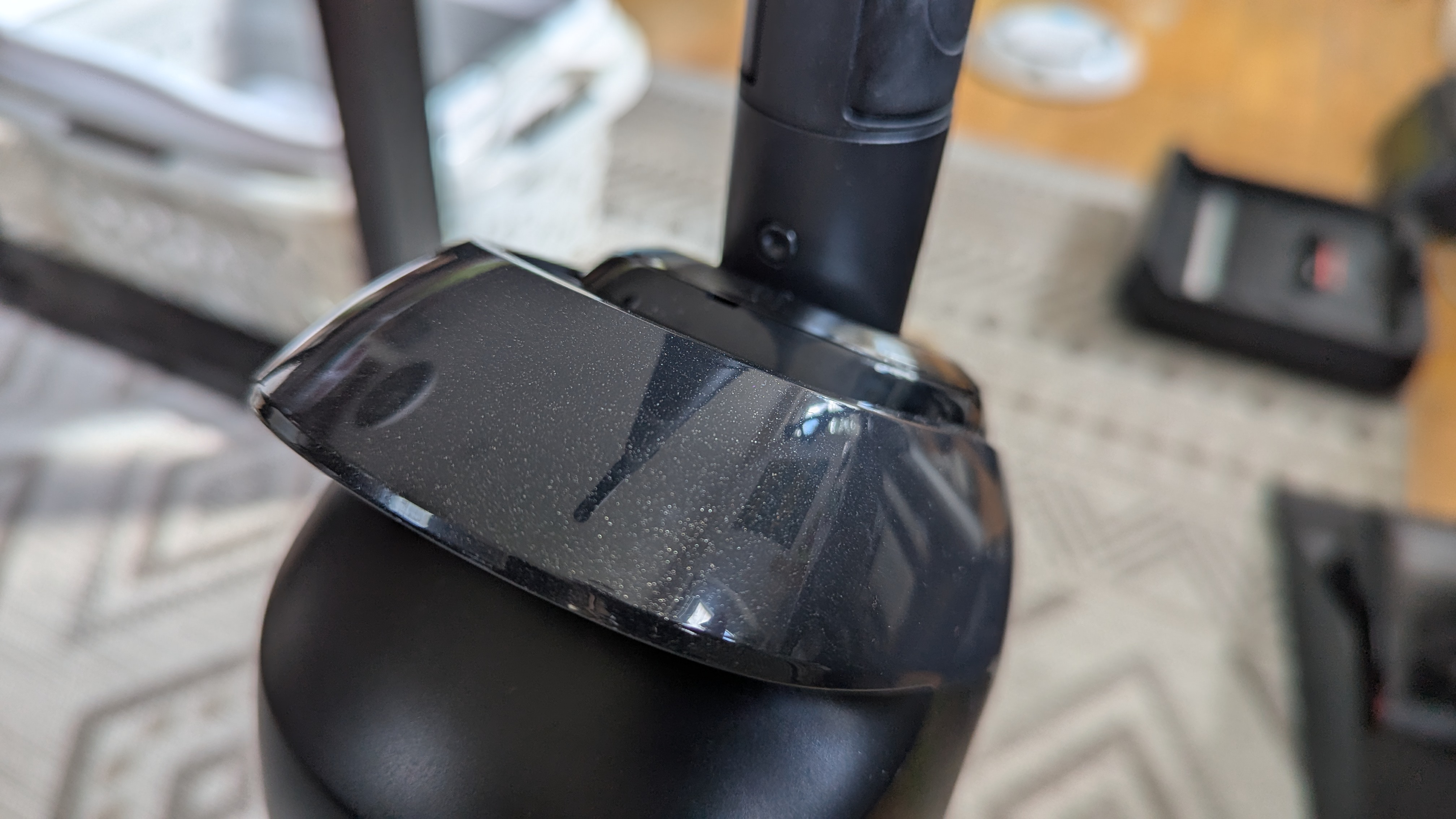 Die Gewichtsverteilung wurde verbessert: Der Frischwassertank sitzt jetzt im Bodenelement, was den Bedienwiderstand verringert. Mit 6,2 kg ist das Gerät schwer, liegt aber besser in der Hand als der Vorgänger. Die Station wirkt solide, nimmt aber mit ihren Maßen einigen Platz ein. Das schwarze Design ist zeitlos, allerdings auch unspektakulär. Die automatische Abziehlippe am Kopf ist das optische Highlight und macht einen robusten Eindruck. Im direkten Vergleich wirkt der Tineco Floor One S9 Artist (Testbericht) hochwertiger verarbeitet.