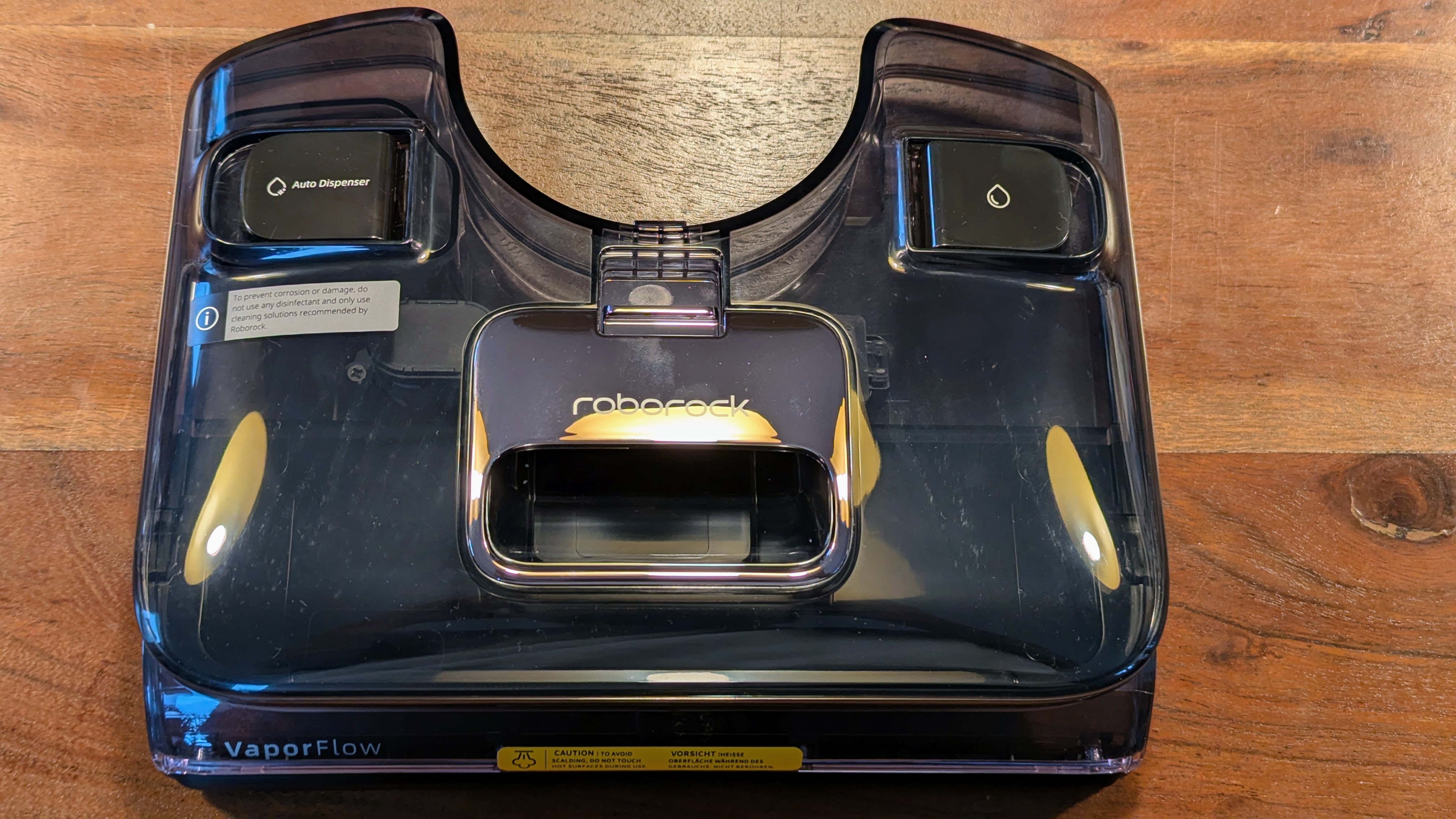 Sind die Updates installiert und der Akku aufgeladen, muss man zum Schluss nur noch den Frischwassertank befüllen und kann bei Bedarf Reinigungskonzentrat in das separate Fach hinzugeben.