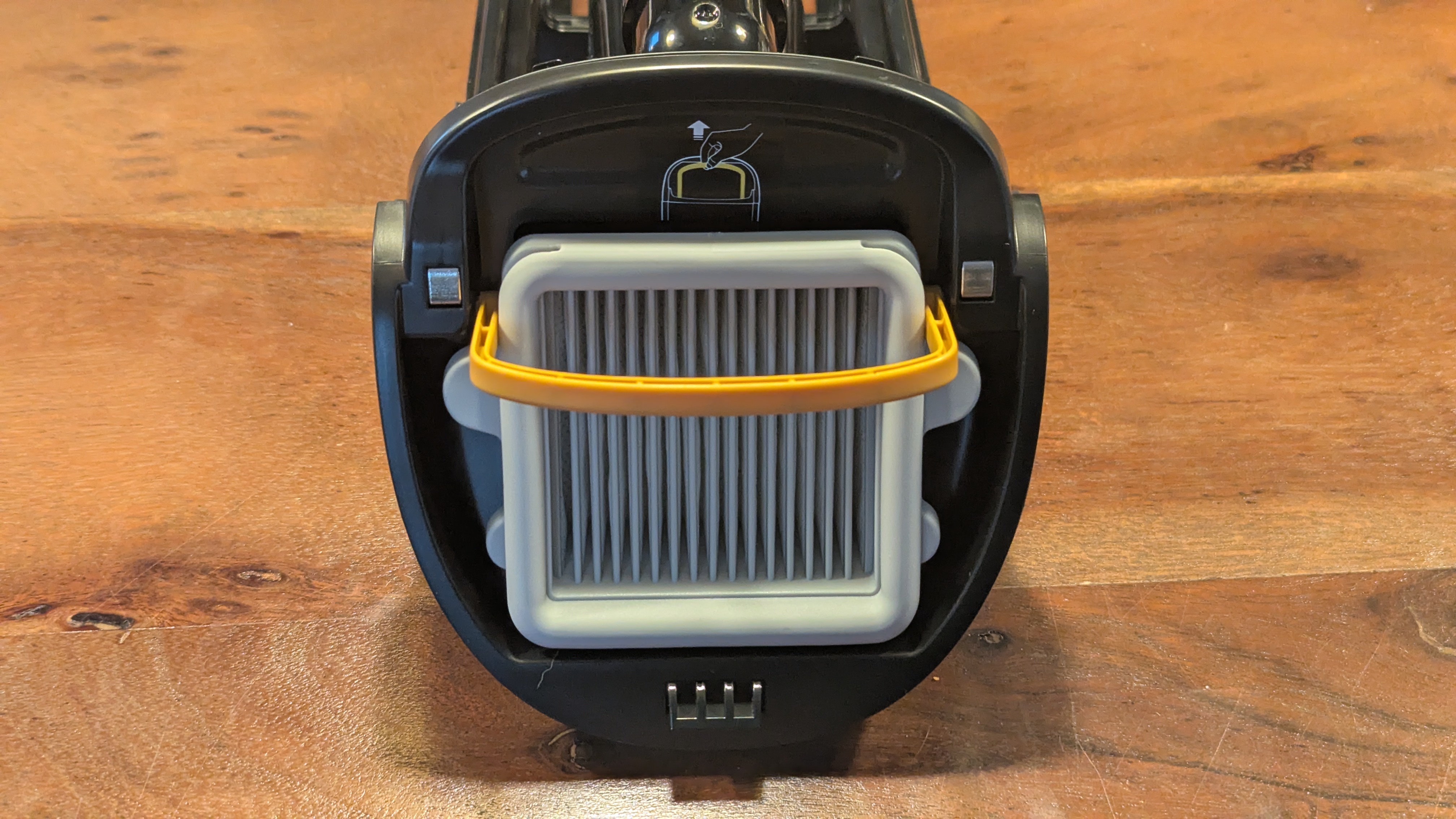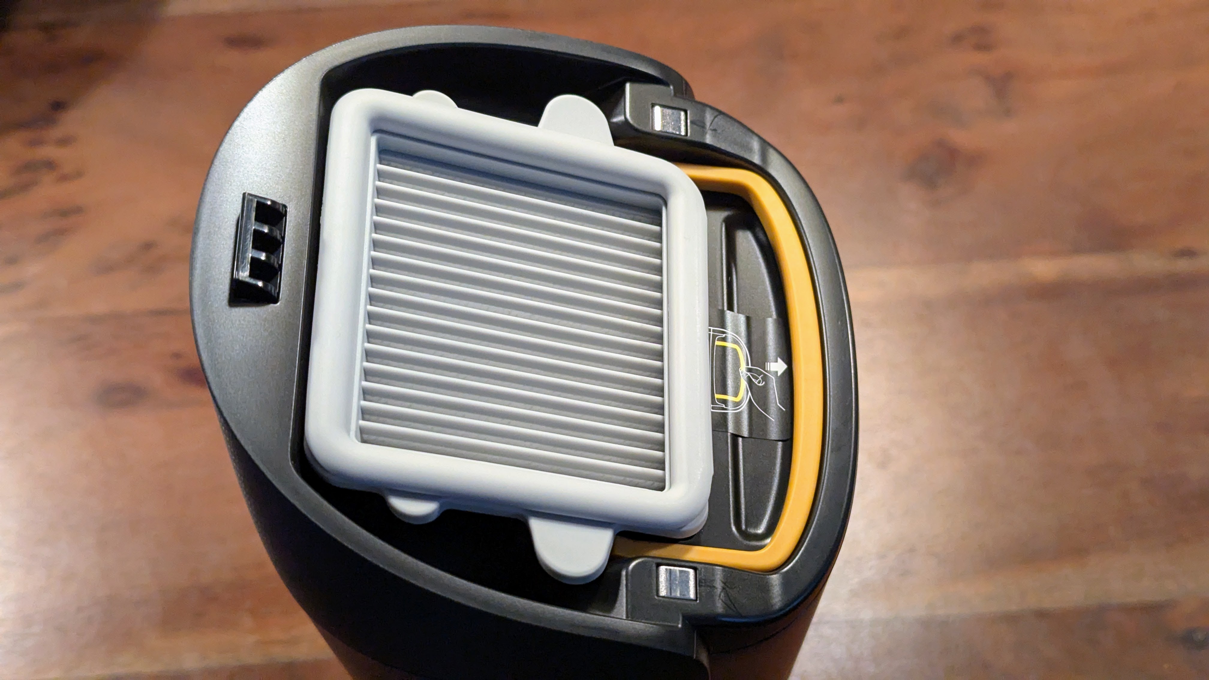 Auf dem Tank sitzt ein austauschbarer und auswaschbarer HEPA-Filter. Mittels des etwas darunter platzierten Hebels löst man das Auffangsieb vom Tank, um die festen Substanzen in den Müll schmeißen zu können. Achtung: Auch wenn das Sieb das Gros an Haaren und Dreck auffängt, befinden sich in der Plörre im Abwassertank gerne mal feste Substanzen, die am Sieb vorbeihuschen. Diese können im Abfluss oder Rohrsystem verfangen und im schlimmsten Fall für eine Verstopfung sorgen. Es lohnt sich daher immer, ein Sieb im Abfluss zu haben oder eins ins Spülbecken zu stellen, bevor man das Abwasser wegkippt. Die mitgelieferte Handbürste hilft hier, das Auffangsieb und den Abwassertank anschließend sauber zu schrubben. Eine regelmäßige Reinigung, im besten Falle jedes Mal nach Verwendung, ist ratsam, um Gerüche zu vermeiden – auf dem Abwasser bildet sich innerhalb weniger Tage bereits ein stinkender Biofilm.