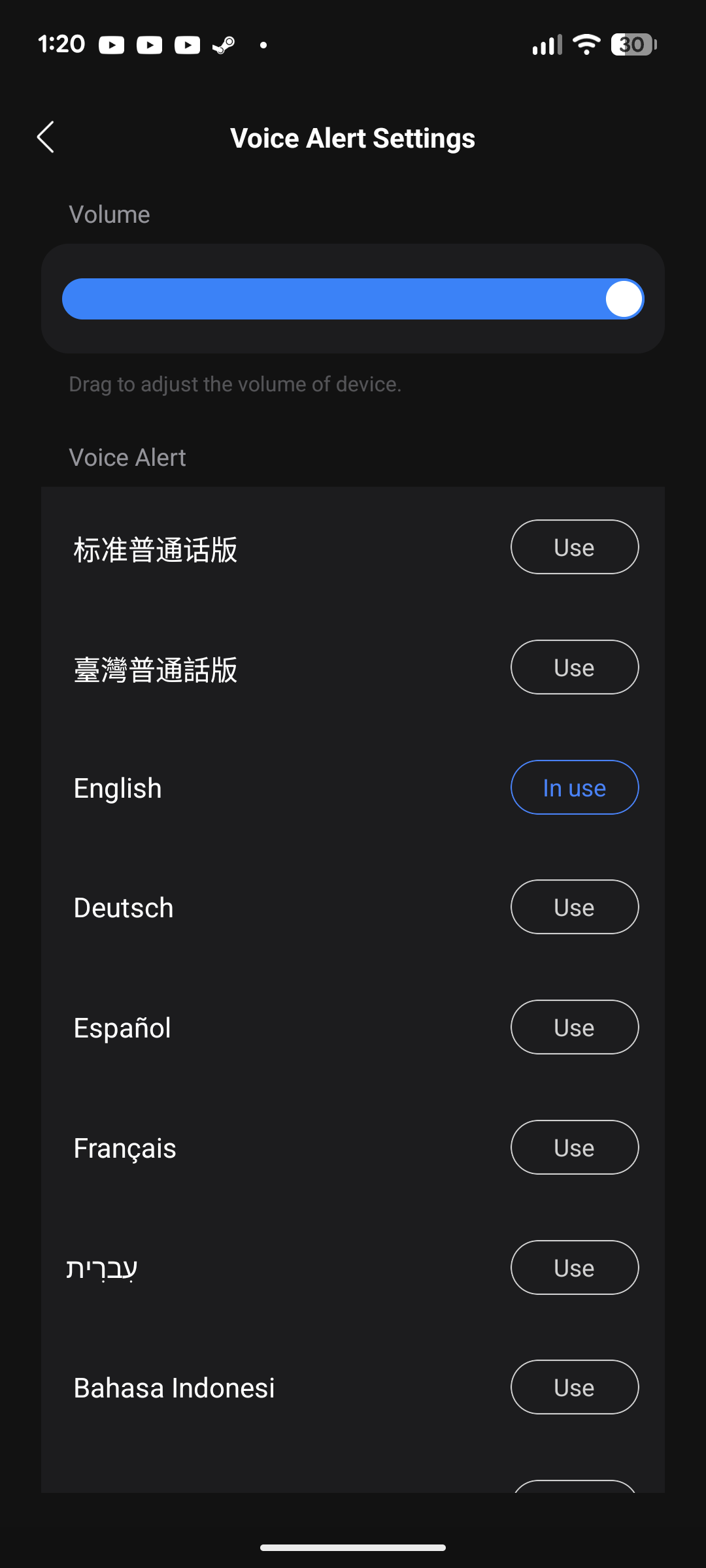 Der Roborock F25 Ultra lässt sich sowohl per App als auch über die Buttons am Griff steuern. Er legt los, sobald man ihn durch das zu sich Ziehen aus der Arretierung löst. Auf dem Display zeigt er dann den Akkustand sowie den aktuell gewählten Modus per Icon an. Per Button wechselt man durch die vier verschiedenen Modi Auto, Steam, Hot-Water und Sponge oder nutzt direkt die App dafür. Der Vorteil daran: zusätzliche Einstellungsmöglichkeiten wie die Saugkraft, die Menge an Wasser oder wie stark die Räder motorisieren. Fester Bestandteil eines jeden Roborock-Wischsaugers ist zudem die Ansagerstimme, die Informationen zum Gerät weitergibt. Darunter der aktuell gewählte Modus oder ob das Gerät auf der Station zu laden beginnt. Lautstärke und Sprachausgabe lassen sich über die App verwalten, was gut ist, denn ab Werk ist uns die Stimme zu laut. Bei Ansagen hält sie sich vergleichsweise kurz, was angenehm ist. Möchte man keine Tipps oder Hinweise von der Roboterstimme erhalten, kann man diese jedoch auch gänzlich abschalten.